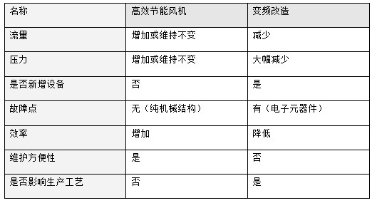 通过整改目前系统存在的不利因素,并按高效运行工况参数量身设计、开模定做流体输送“高效环保节能风机”和“专用调节装置”,替换目前处于高能耗、低效率运行的风机,降低系统中的“无效能耗”,提高输送效率及风机的有效利用率,并可通过“专用调节装置”使风机满足在各种工况下的运行要求,大幅提升风机效能,达到理想的节能效果。